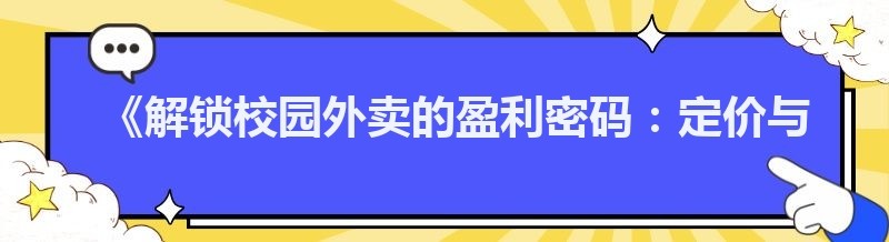 《解锁校园外卖的盈利密码:定价与市场拓展策略》