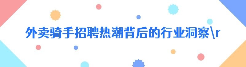 - 招聘难度增加 随着外卖市场的不断扩大,外卖骑手的需求也在不断增加。然而,由于外卖骑手的工作特点和市场竞争的加剧,招聘难度也在不断增加。一些外卖平台为了吸引骑手,不得不提高招聘条件和待遇,这也增加了招聘成本。