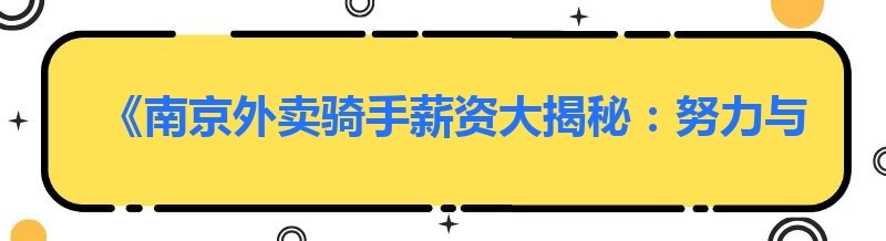 《南京外卖骑手薪资大揭秘:努力与收入的平衡之道》