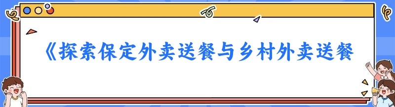 《探索保定外卖送餐与乡村外卖送餐服务的新态势》