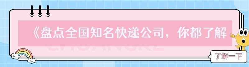 在当今社会,快递行业已经成为我们生活中不可或缺的一部分。无论是网购商品的配送,还是文件、物品的寄送,都离不开快递公司的服务。那么,全国到底有哪些快递公司呢?让我们一起来盘点一下。
