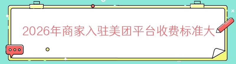 2026年商家入驻美团平台收费标准大揭秘