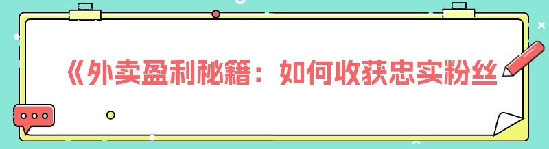 《外卖盈利秘籍:如何收获忠实粉丝,实现长久盈利》