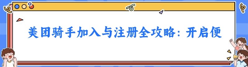 美团骑手加入与注册全攻略:开启便捷配送之旅