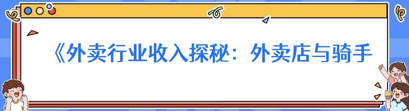 《外卖行业收入探秘:外卖店与骑手的盈利真相》