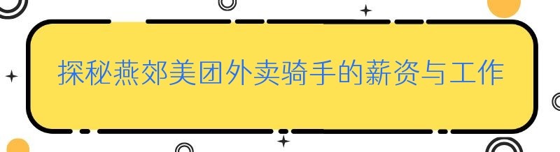 探秘燕郊美团外卖骑手的薪资与工作体验