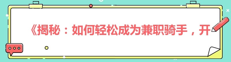 《揭秘:如何轻松成为兼职骑手,开启美团骑手之路》
