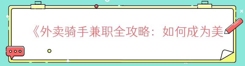 编辑 《外卖骑手兼职全攻略:如何成为美团骑手》