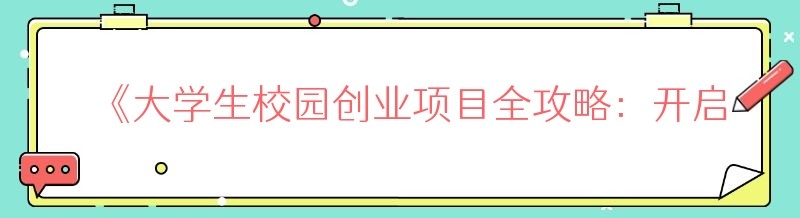《大学生校园创业项目全攻略:开启梦想之旅》