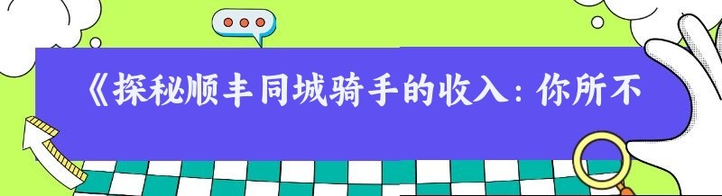 《探秘顺丰同城骑手的收入:你所不知道的那些事儿》