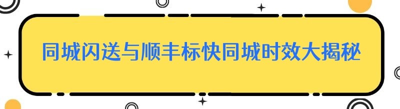 同城闪送与顺丰标快同城时效大揭秘