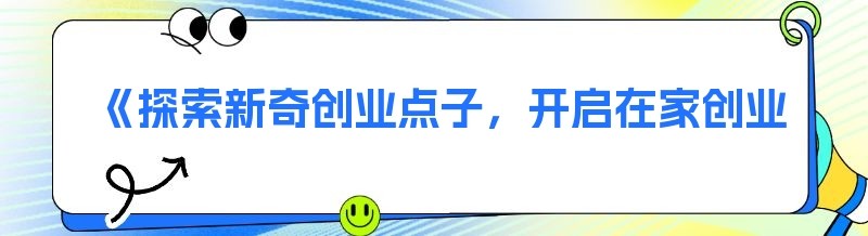 在这个充满机遇与挑战的时代,越来越多的人渴望通过创业来实现自己的梦想和价值。对于那些希望在家创业的人来说,选择一个合适的项目至关重要。那么,有哪些新奇的创业点子适合在家开展呢?让我们一起来探索一下。