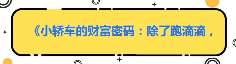 《小轿车的财富密码:除了跑滴滴,这些赚钱途径你知道吗?》