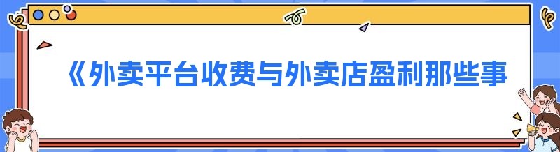 《外卖平台收费与外卖店盈利那些事儿》