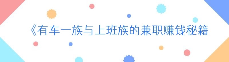 在这个生活节奏日益加快、经济压力逐渐增大的时代,许多有车一族和上班族都渴望通过兼职来增加收入。那么,到底有哪些适合他们的兼职呢?让我们一起来探索一下。