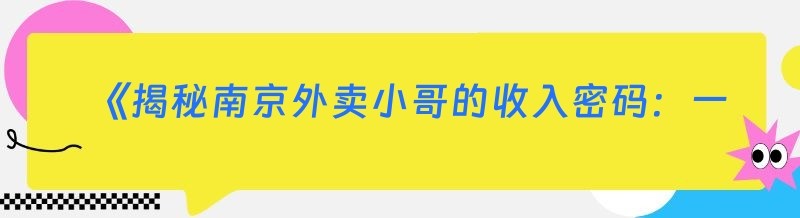 《揭秘南京外卖小哥的收入密码:一单挣多少,一月能赚几何?》