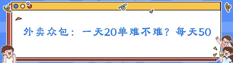 外卖众包:一天20单难不难?每天50单劳动强度究竟如何?