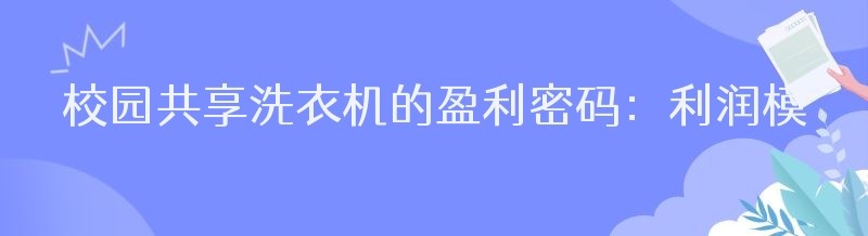 校园共享洗衣机的盈利密码:利润模式大揭秘