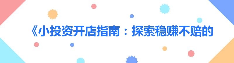 《小投资开店指南:探索稳赚不赔的创业之路》