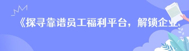 《探寻靠谱员工福利平台,解锁企业福利团购新体验》
