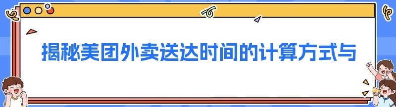 在如今这个外卖盛行的时代,我们点外卖时都格外关注送达时间。那么,美团外卖的送达时间究竟是怎么算的呢?美团外卖指定时间到底是送出还是送达呢?今天,我们就来深入探讨一下这些问题。