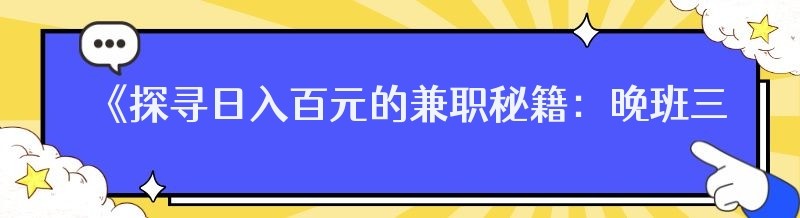 《探寻日入百元的兼职秘籍:晚班三小时赚100元的可行性与策略》