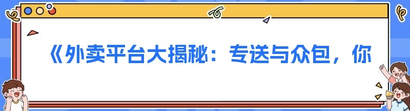 《外卖平台大揭秘:专送与众包,你该如何抉择?》