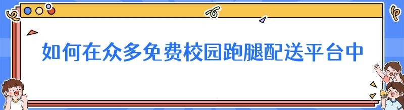 如何在众多免费校园跑腿配送平台中慧眼识珠