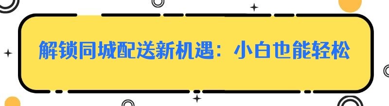 解锁同城配送新机遇:小白也能轻松上手的创业指南