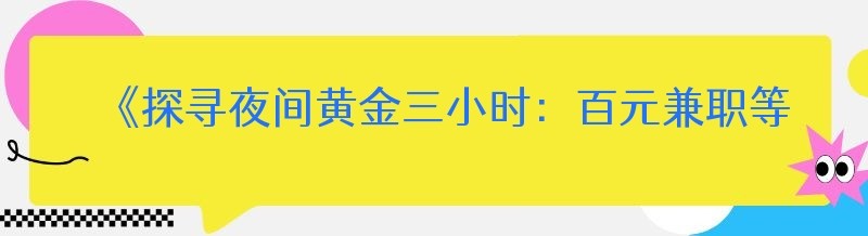 在当今社会,越来越多的人希望在工作之余能够通过兼职来增加收入。尤其是对于那些白天有固定工作,晚上有空闲时间的人来说,寻找一份合适的晚班兼职成为了他们的目标。那么,有没有一种晚班兼职,既能在三小时内赚到100元,又相对轻松容易上手呢?让我们一起来探索一下。