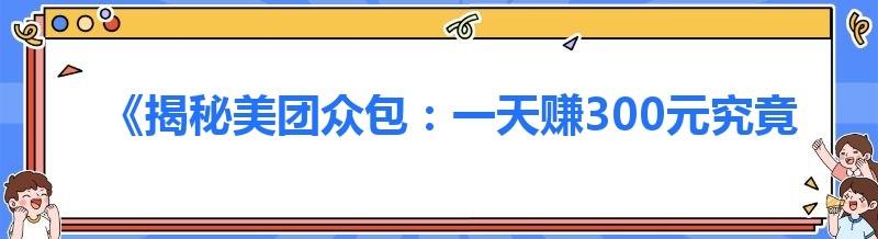 《揭秘美团众包:一天赚300元究竟难不难?》