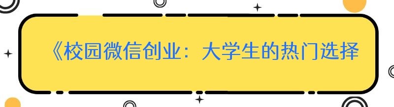 《校园微信创业:大学生的热门选择与成功之道》