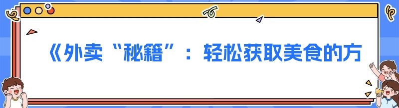 《外卖“秘籍”:轻松获取美食的方法》