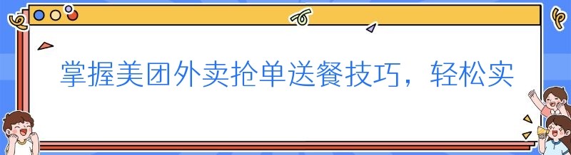 掌握美团外卖抢单送餐技巧,轻松实现高效配送