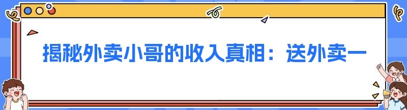 揭秘外卖小哥的收入真相:送外卖一个月到底能挣多少钱?
