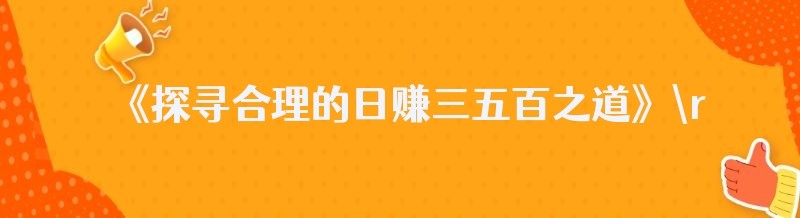 《探寻合理的日赚三五百之道》
