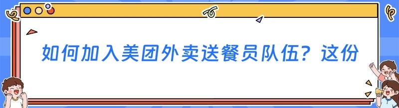 如何加入美团外卖送餐员队伍?这份指南请查收!