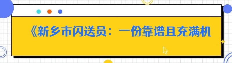 《新乡市闪送员:一份靠谱且充满机遇的职业》