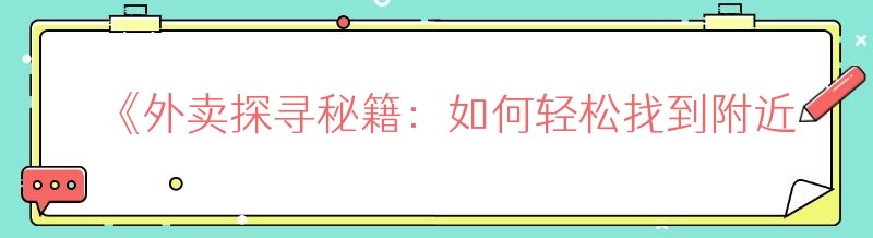 在这个快节奏的时代,外卖已经成为了许多人日常生活中不可或缺的一部分。无论是忙碌的上班族,还是宅家的学生党,都希望能够快速、便捷地享受到附近的美食。那么,究竟该如何找到附近的外卖送餐呢?在网上又该怎么找附近的外卖呢?今天,就让我们一起来揭开这个神秘的面纱,探索外卖探寻的秘籍。