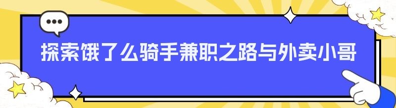 探索饿了么骑手兼职之路与外卖小哥的多元兼职选择