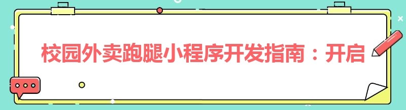 校园外卖跑腿小程序开发指南:开启便捷生活新方式