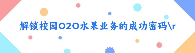 解锁校园O2O水果业务的成功密码