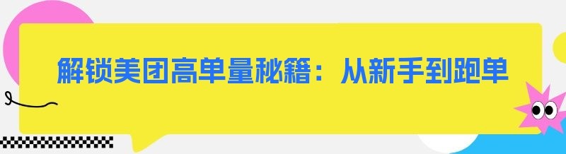 解锁美团高单量秘籍:从新手到跑单达人的进阶之路