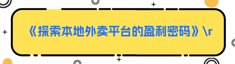 《探索本地外卖平台的盈利密码》