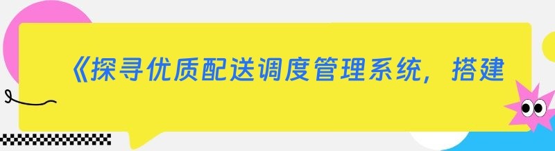《探寻优质配送调度管理系统,搭建高效外卖配送调度系统全攻略》