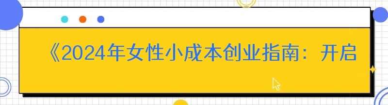 《2024年女性小成本创业指南:开启属于你的财富之路》