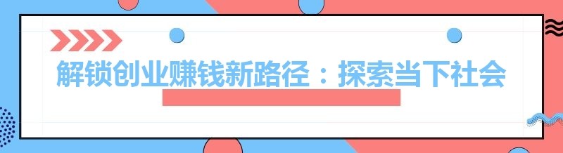 解锁创业赚钱新路径:探索当下社会的财富密码