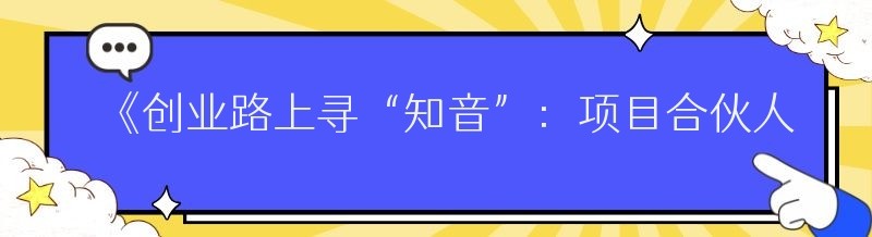 《创业路上寻“知音”:项目合伙人找寻全攻略》