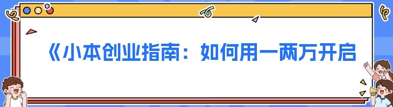 在当今社会,创业已经成为许多人追求财富和实现自我价值的重要途径。然而,对于大多数人来说,资金是创业面临的最大难题之一。那么,如何用一两万慢慢做起来一个小生意呢?本文将为您提供一些实用的建议和方法。