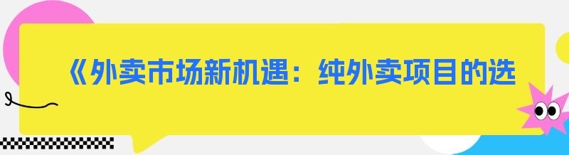 《外卖市场新机遇:纯外卖项目的选择与开店分析》